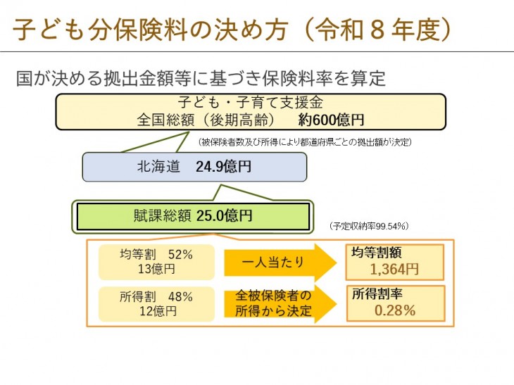 ※令和9年度子ども分保険料率については令和8年度中に算定します。 - 保険料は、被保険者が等しく負担する均等割額と被保険者の所得に応じて負担する所得割額の合計となります。